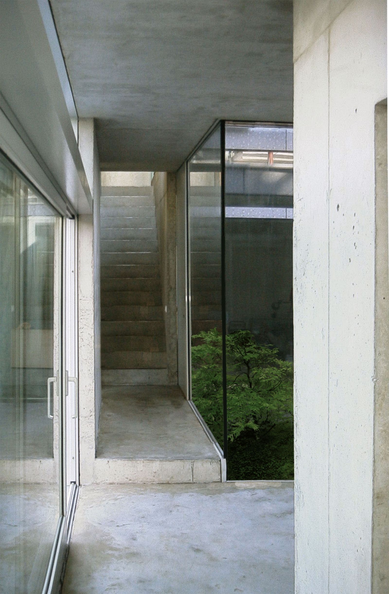 The living and working space on Geisselstraße addresses the array of legal conditions while generously providing a sequence of 360 light-flooded square meters on the extremely long and narrow plot. The volume closest to the street contains a three-story house with living quarters and the client’s atelier; at the rear there is a two-story garden house for their children. The two units are connected via a separable single-story link that contains shared spaces such as kitchens and bathrooms. The building’s irregular shape and connected volumes therefore make full use of this infill site. The building is understood as a living and working space which, despite the neighborhood’s high density, is still able to provide green and outdoor areas of varying sizes by using the terraces, roof garden, ground floor garden, and inner courtyard, which are in constant dialogue with the interior. The concrete structure is clad using two facade systems: the atelier is covered in multi-layered polycarbonate sheets and aluminum louver windows, while the garden house has an insulated glass facade with sliding wood elements.