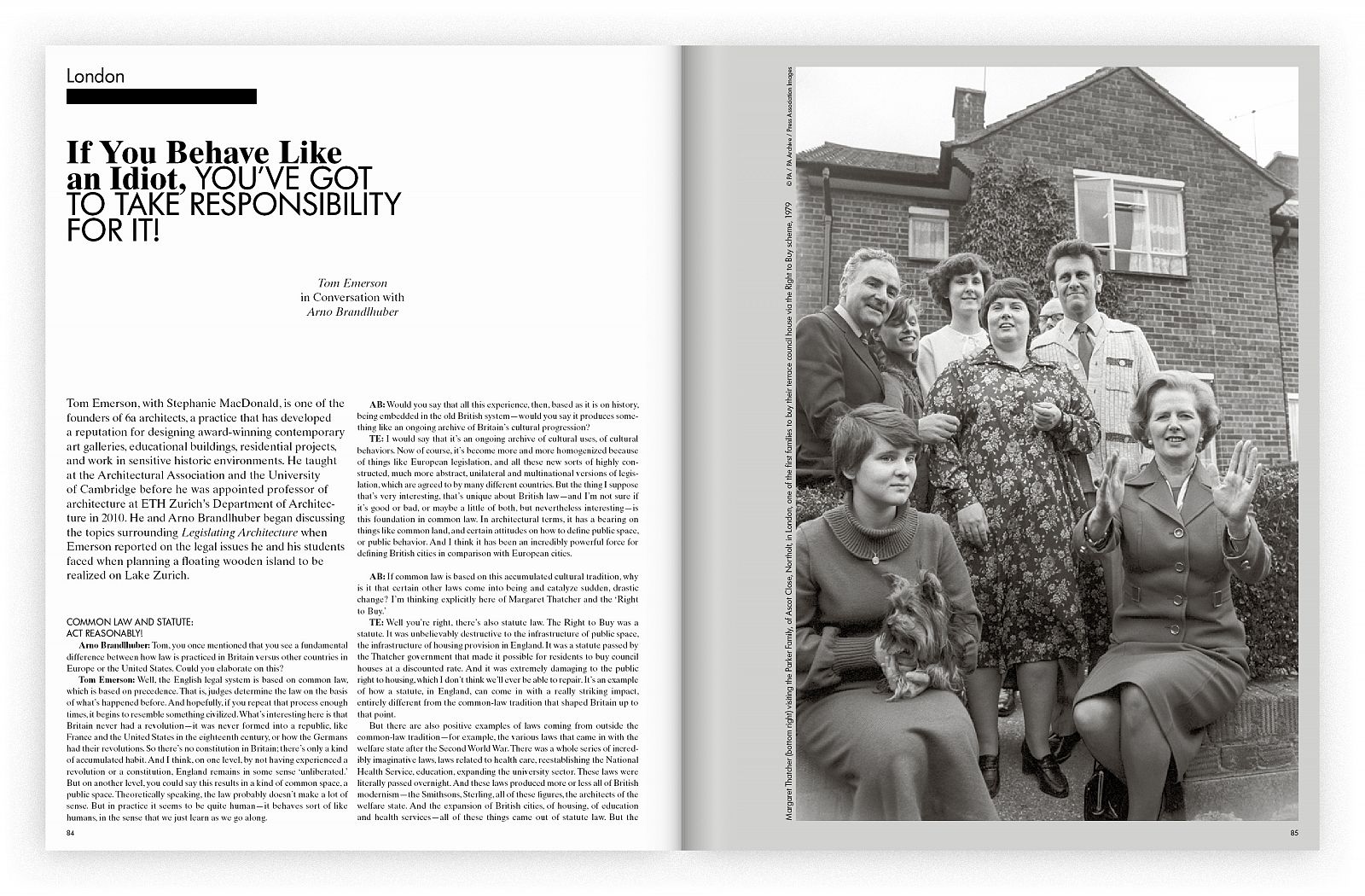 This ARCH+ publication explores how architecture is shaped by societal regulatory systems and law. It takes the film 0187.2 Legislating Architecture as its point of departure, which shows excerpts from conversations Arno Brandlhuber and Christopher Roth conducted with a broad range of architects on the subject of legislating architecture, published in the issue in their entirely. In collaboration with Arno Brandlhuber and Tobias Hönig, ARCH+ has proceeded to delve much deeper into this topic. The German version of this publication has the subtitle “Gesetze gestalten!” which can be read as both a declaration that laws design, and an exhortation to design laws. This phrase suggests that architecture is not only determined by regulations, but that it too has the power to create regulations itself.