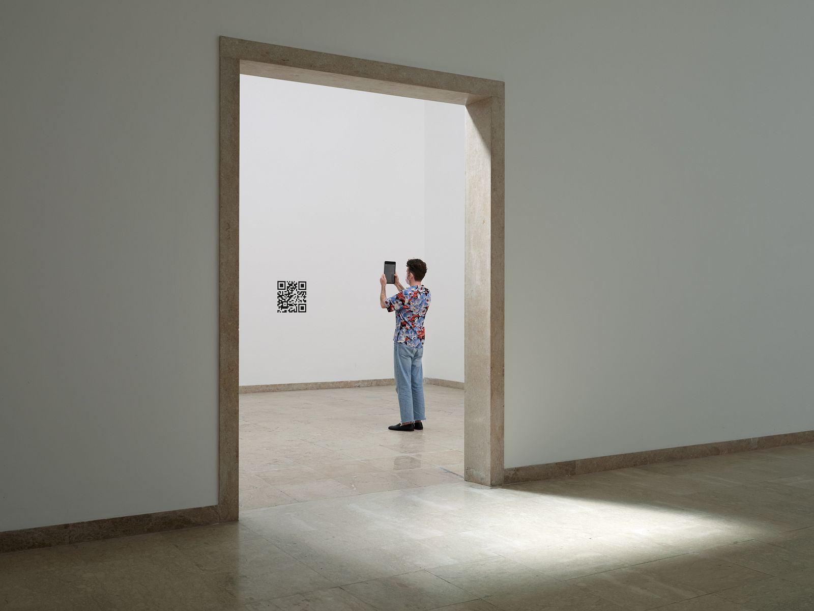 "The most radical approach is taken by the German Pavilion team 2038. They completely cleared the German Pavilion, painted the walls white and reopened the skylights. This is roughly the same as it was in 1938, when architect Ernst Haiger monumentalized the building – which originally dates back to 1912 and was built as the Bavarian Pavilion – in the style of NS representative classicist architecture. While generations of curators have worked on this history with (structural) interventions, the building is not an issue this time. Nothing is on display, except for large QR codes that lead to the story of 2038. There's no reason to go to Venice, because it works just as well on smartphones, laptops or computers.