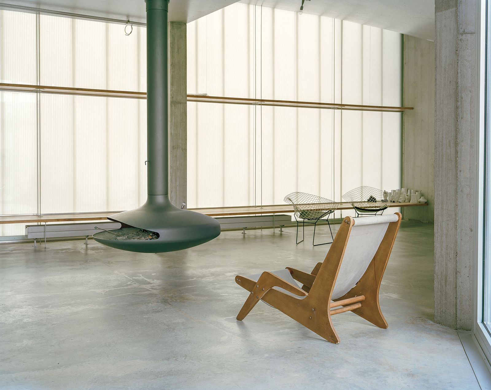 The continuation of the adjacent building heights into Brunnenstrasse 9 results in a 30 centimeter difference between the two floor levels. This 30 centimeter step occurs on every story, creating a natural division of space with different height zones apt for various uses. The initially unroofed basement has become a double height room, visible from the street. If desired, this single space can easily be divided into two by inserting a ceiling, using the visible anchor bolts already set in the reinforcement. The concrete core, reduced to a minimum, houses the bathrooms and the elevator. It directly connects the different units to the street level via an entrance located in the public passageway. Apart from this central core, there is no other physical connection between the single units. The only way to circulate between them is either through elevator access or the external staircase attached to the rear facade, like at 0019 Kölner Brett . This exterior circulation layer is offset five meters from the back facade in accordance with the building code and fire regulations. The need for an interior stair is eliminated by shifting the staircase outside, which permits maximum spatial efficiency and complete independence for the users. The platforms connecting the exterior staircase also function well as terraces and public space for the residents. As the tram wires prevent firefighters from using extendible ladders on the street side, a second entrance had to be installed at the rear. In order to comply with regulations for the second fire escape—via the windows—the courtyard ground was raised 72 centimeters on one side and 36 centimeters on the other to match the maximum length of the fire brigade’s eight-meter ladder.