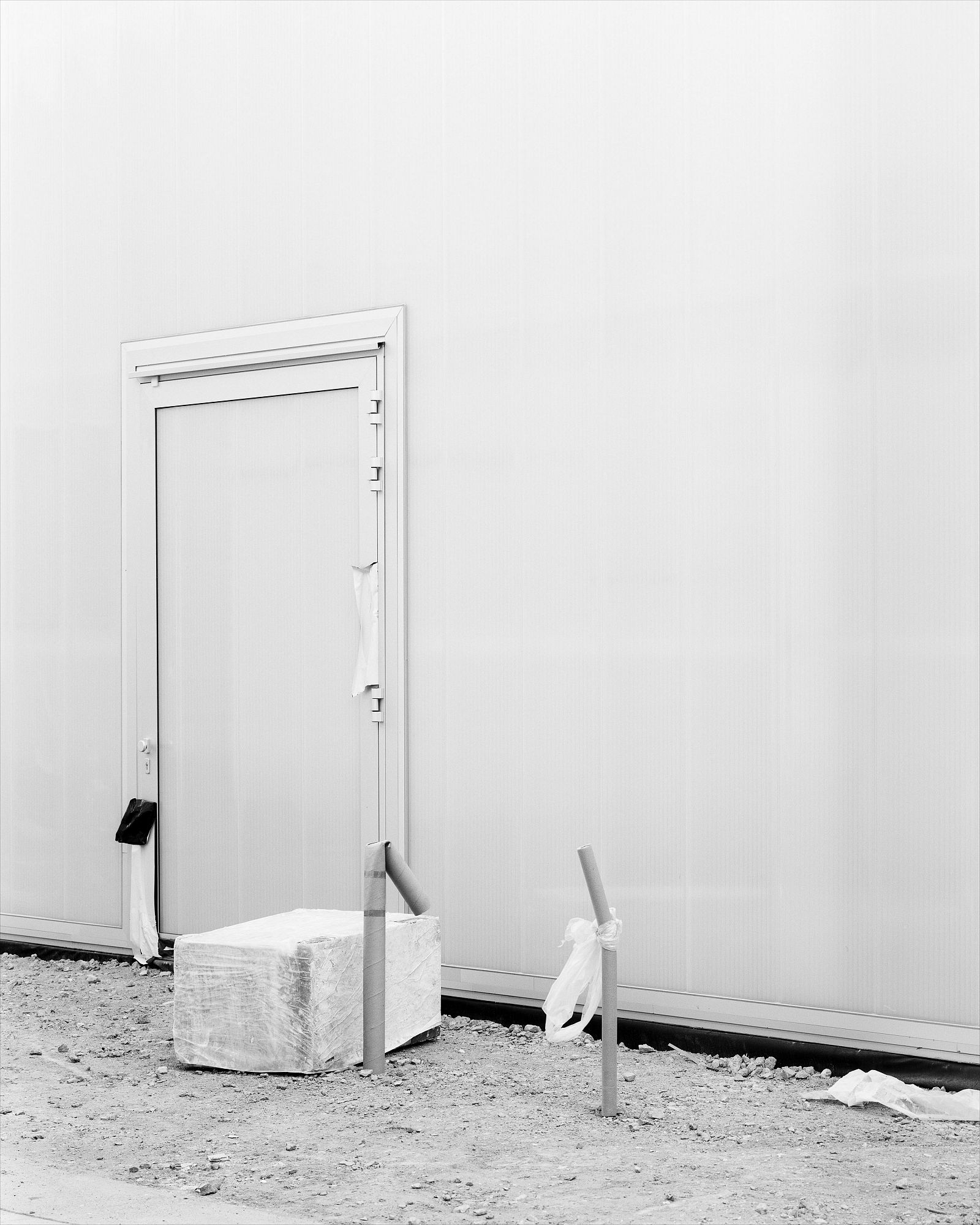 The building is a 108-meter-long steel structure, clad with multi-layer polycarbonate panels, that creates a backdrop using the entire length—from west to east—of the plot. It is visible from every point of the site and as a two-dimensional layer it frames the existing ensemble. The building is used commercially for ateliers, workshops, and offices, each occupying one to three units in accordance with the construction grid, which allows individualized interior fittings. Each unit has a gallery level that provides access to the three meter deep south-facing maintenance terrace. The building is made of prefabricated elements, a concept that was first tested with the “standard+” projects—0066 Dönges I, 0074 Cramer I, and 0097 Wentzsche.